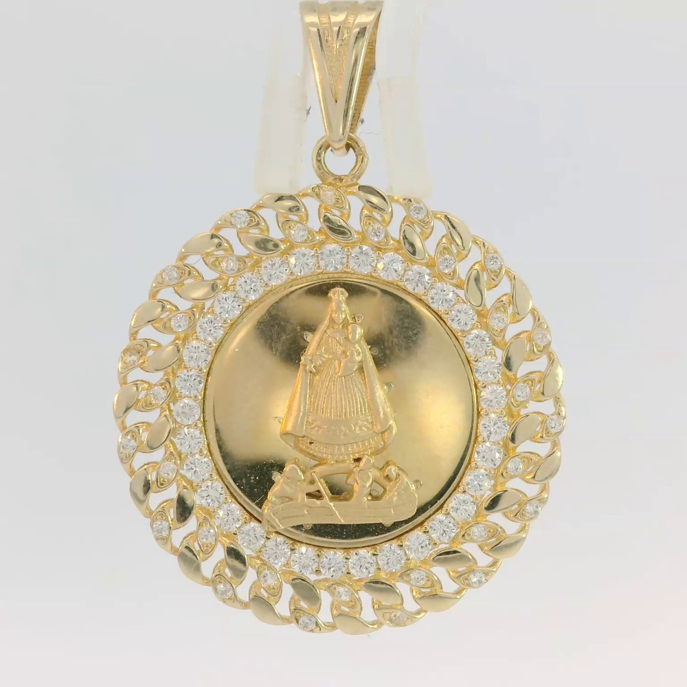 14K Yellow Gold Virgen de la Caridad del Cobre Pendant