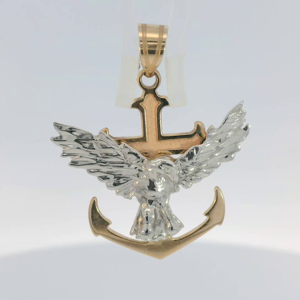 14K Two-Tone Gold Mariner Cross Pendant with Eagle
