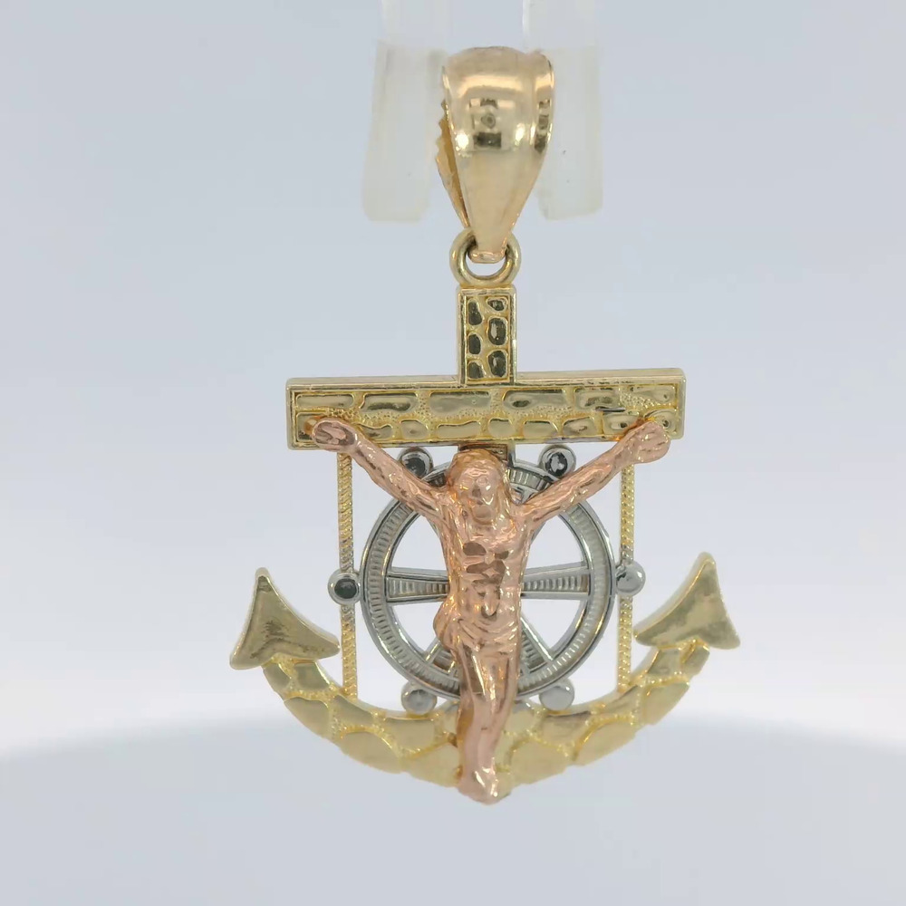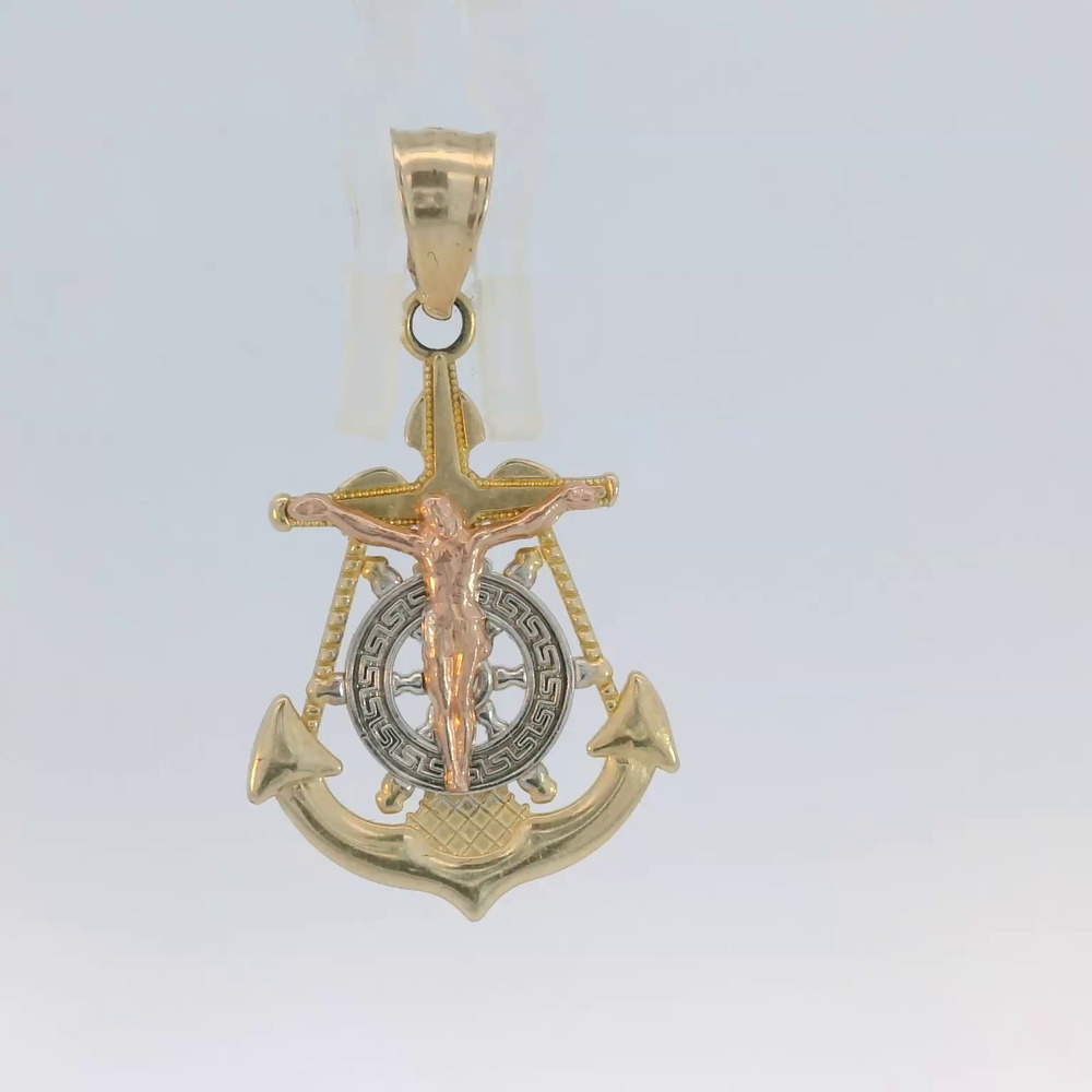 14K Tri-Color Gold Mariner's Crucifix Pendant