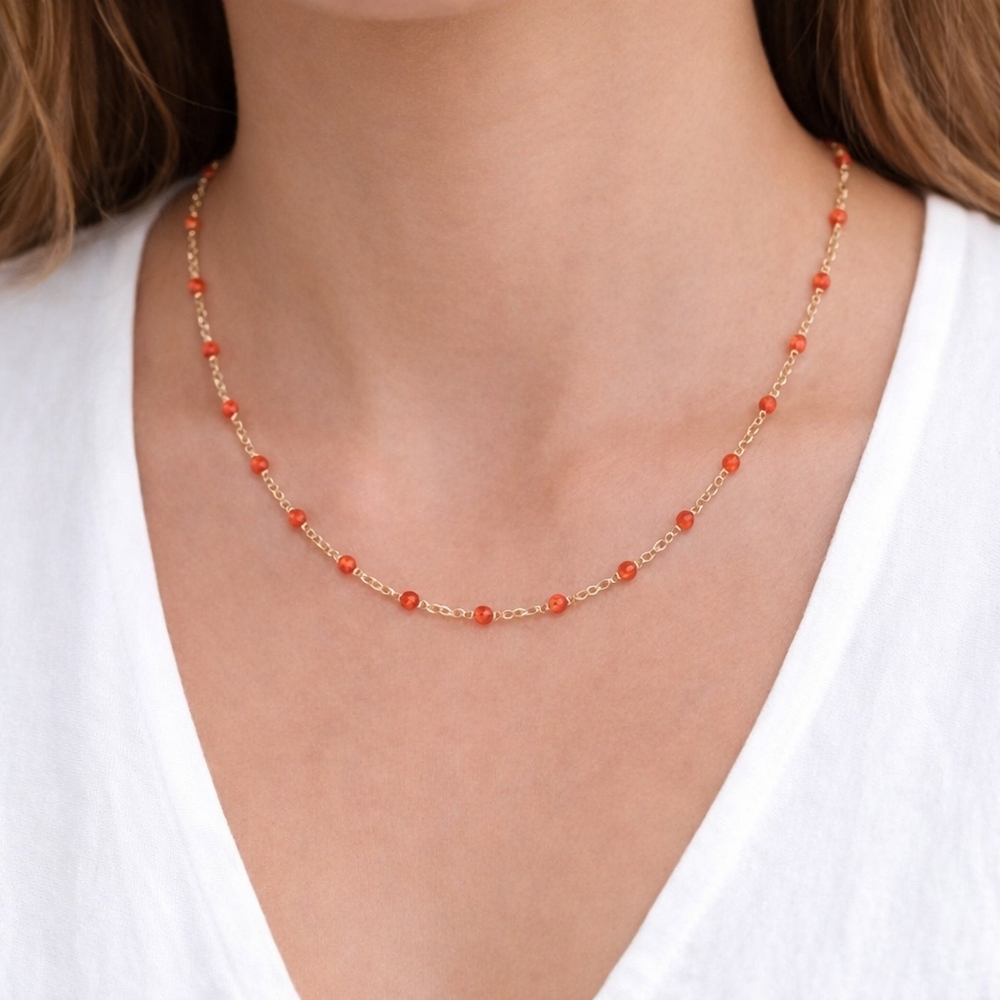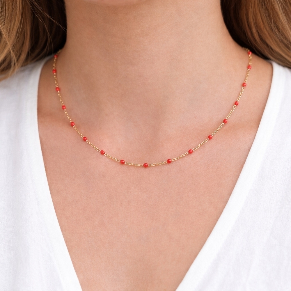 14K Red Beaded Cable Link 18 Inches