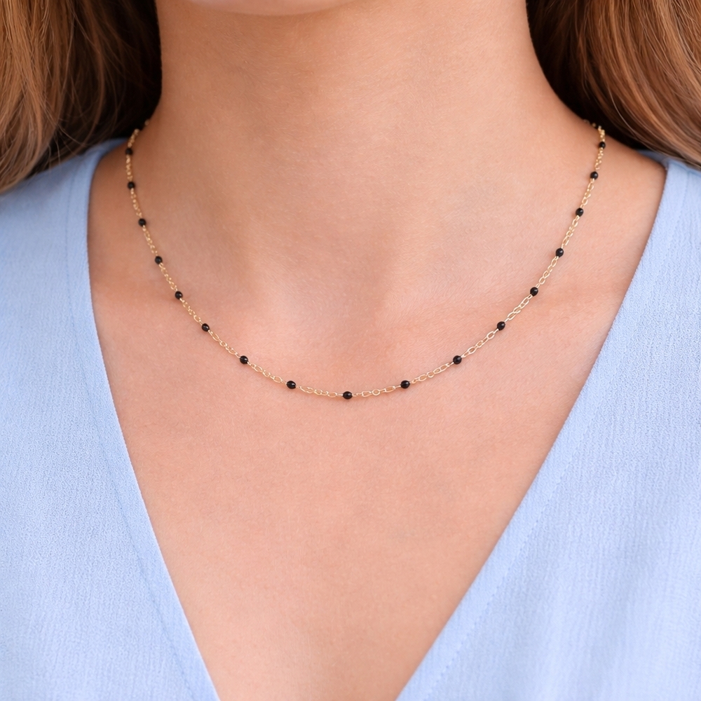 14K Black Beaded Cable Link 20 Inches